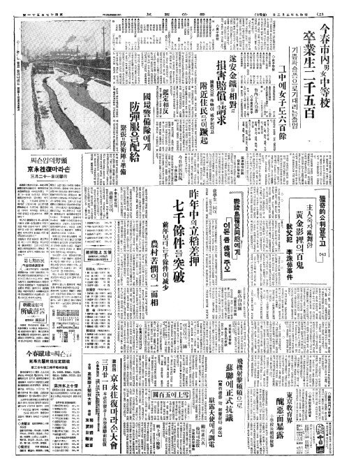 - 今春市内男女中等校(금춘시내남녀중등교) 卒業生二千五百(졸업생이천오백)