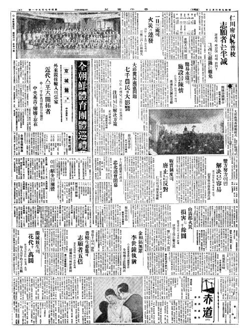 - 仁川府內各普校(인천부내각보교) 志願者(지원자)는半减(반감)