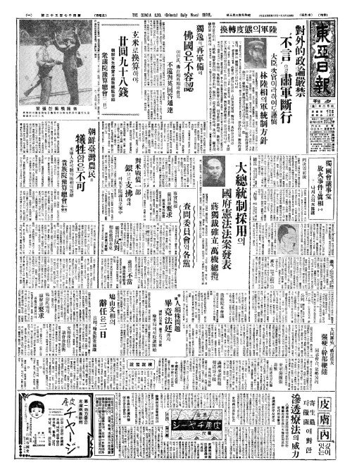 - 大總統制採用(대총통제채용)의 國府憲法法案發表(국부헌법법안발표)