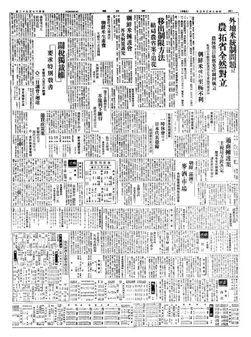 - 外地米統制問題(외지미통제문제)로 農(농)、拓省全然對立(탁성전연대입)