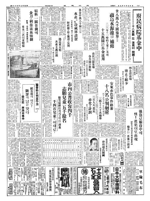 - 市内公普收容四千(시내공보수용사천) 志願兒童五千餘名(지원아동오천여명)