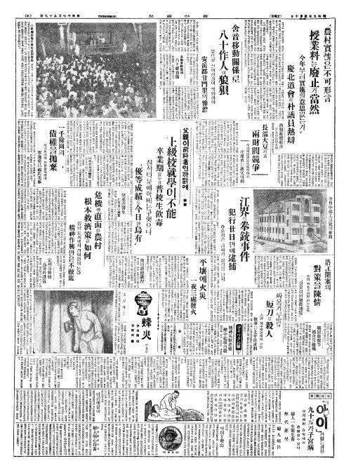 - "農村實情(농촌실정)은不可形言(부가형언) 授業料(수업료)는廢止(폐지)가當然(당연)