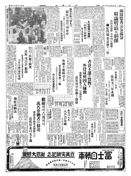 - 前田監查公金橫領(전전감사공금횡령) 府議劈頭(부의벽두)에糾彈(규탄)