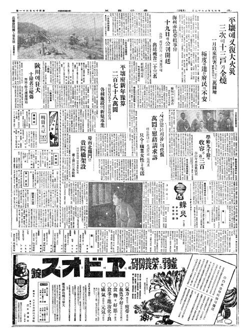 - 平壤(평양)에又復大火災(우복대화재) 三次(삼차)에十三戶(십삼호)가全燒(전소)