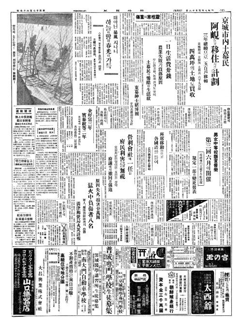 - 京城市內土幕民(경성시내토막민) 阿峴(아현)으로移住(이주)시킬計劃(계획)
