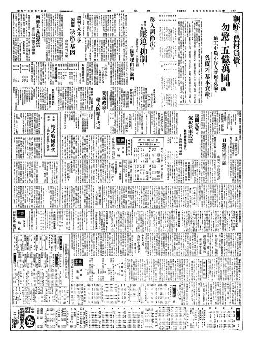 - 朝鮮(조선)의農村負債(농촌부채) 勿驚(물경)!五億萬圓超過(오억만원초과)