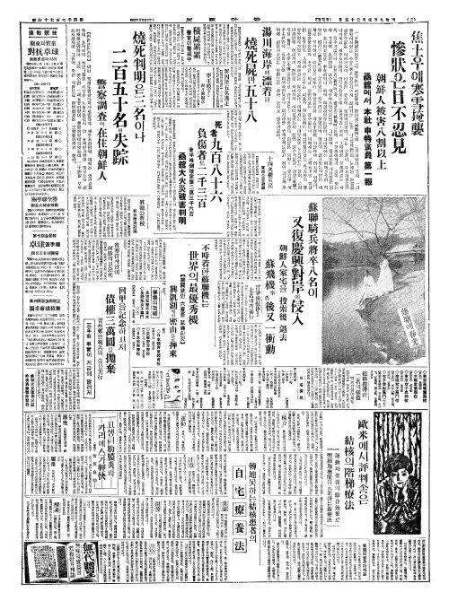 - 燒死判明(소사판명)은三名(삼명)이나 二百五十名(이백오십명)이失踪(실종)