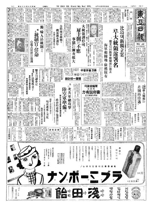 - 比島(비도)의新獨立案(신독립안) 루大統領遂署名(대통영수서명)