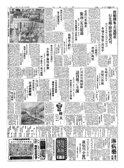 - 仁川府內井水(인천부내정수) 七割(칠할)이不適(부적)