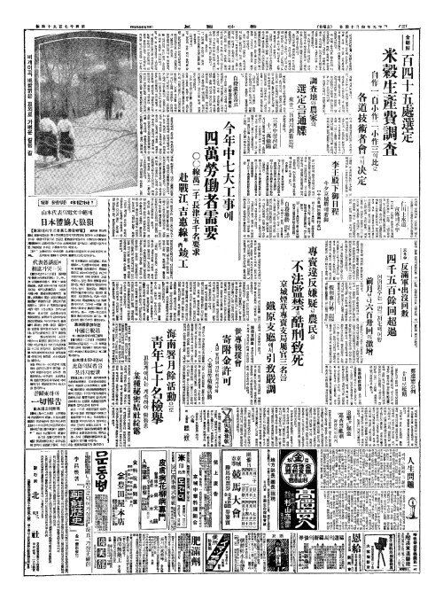 - 今年中七大工事(금년중칠대공사)에 四萬勞働者需要(사만노동자수요)