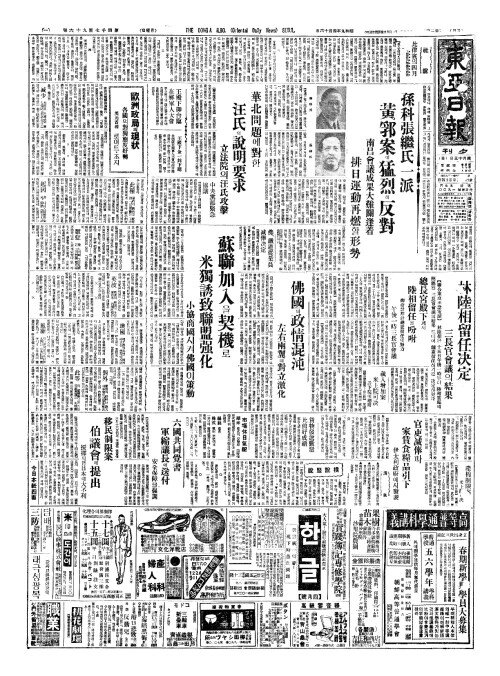- 孫科張繼氏一派(손과장계씨일파) 黃郛案(황부안)에猛烈(맹열)히反對(반대)