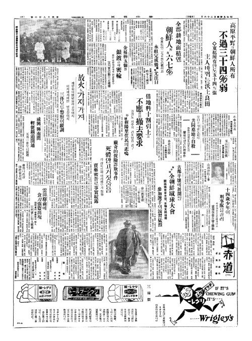 - 全郡耕地面積(전군경지면적)엔 朝鮮人所有六七(조선인소유륙칠)%