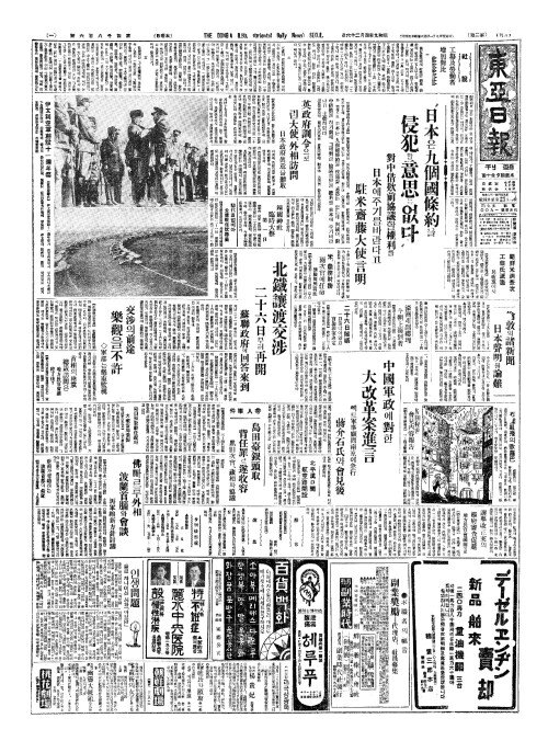 - "日本(일본)은九個國條約(구개국조약)을 侵犯(침범)할意思(의사)는없다"