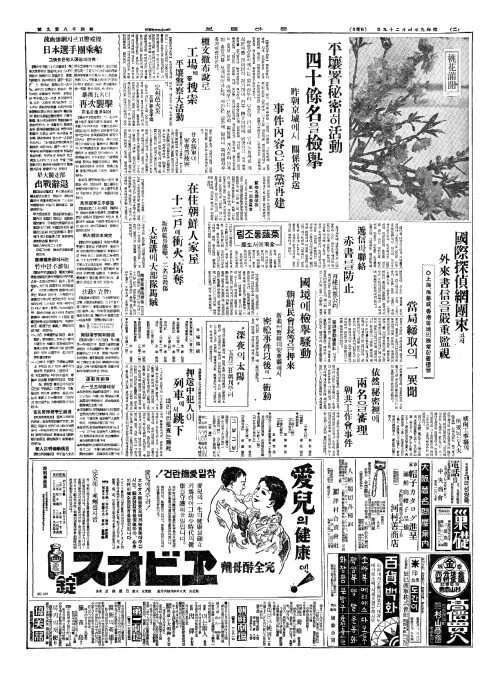 - 平壤署秘密(평양서비밀)히活動(활동) 四十餘名(사십여명)을檢擧(검거)