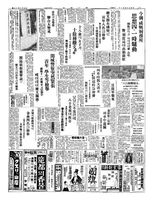 - 開城警察突然緊張(개성경찰돌연긴장) 靑年(청년)、學生等檢擧(학생등검거)