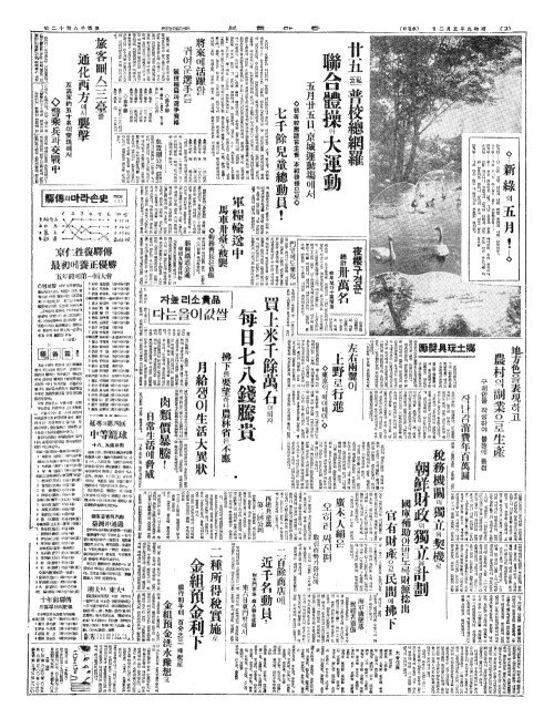 - 廿五(입오){立私(립사)}普校總網羅(보교총망라) 聯合體操(련합체조)와大運動(대운동)