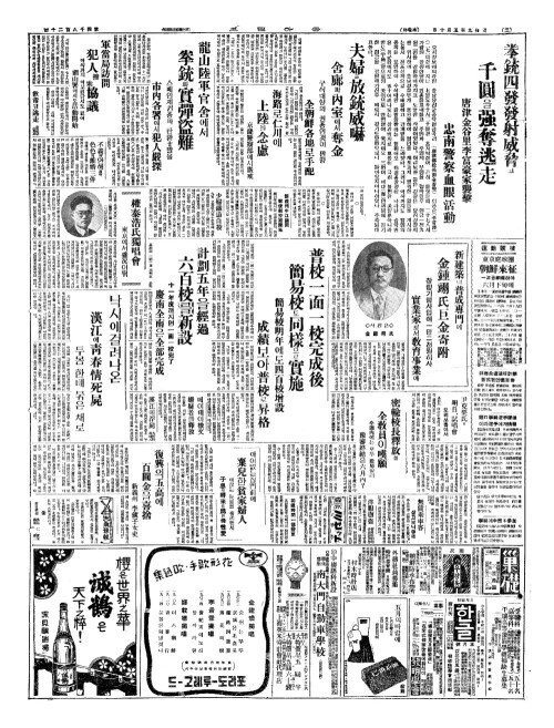 - 拳銃四發發射威脅(권총사발발사위협)코 千圓(천원)을强奪逃走(강탈도주)