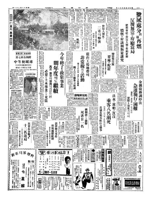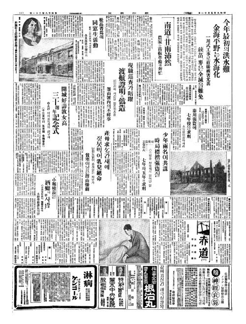 - 今年最初(금년최초)의洪水難(홍수난) 金海平野(김해평야)는水海化(수해화)