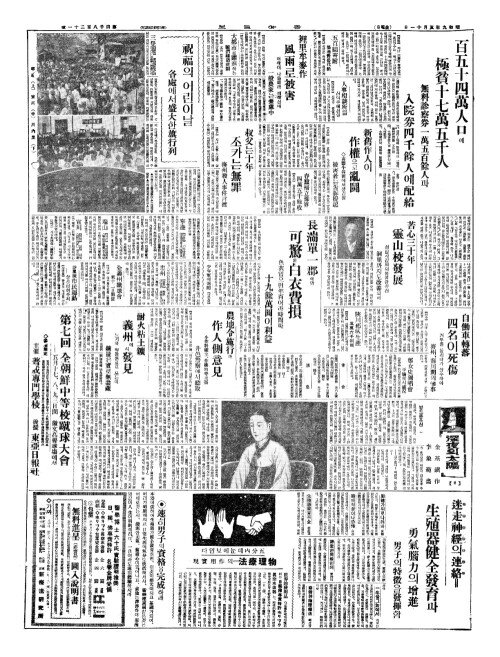 - 百五十四萬人口(백오십사만인구)에 極貧十七萬五千人(극빈십칠만오천인)