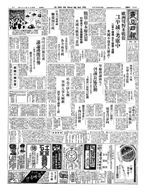 - 歐洲(구주)의對米戰債(대미전채) 그半减(반감)을考慮中(고려중)