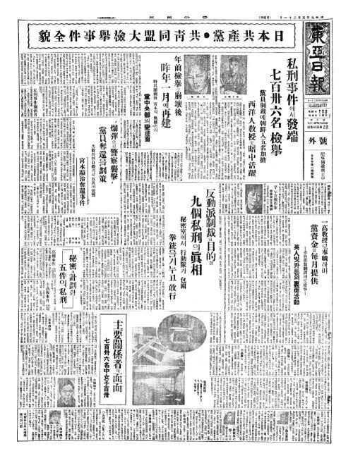 - 私刑事件(사형사건)에서發端(발단) 七百卅六名(칠백삽육명) 檢擧(검거)