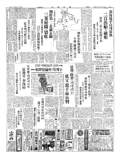 - 黃海延平島(황해연평도)에暴風(폭풍) 二百漁船(이백어선)이破船(파선)