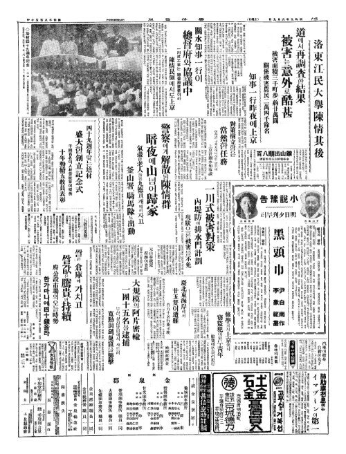- 小說豫告(소설예고) 明日夕刋(명일석천)부터 黑頭巾(흑두건)