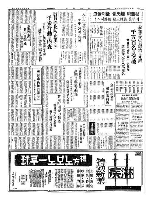 - 敎員赤化防止策(교원적화방지책)으로 平素行動(평소행동)을內査(내사)