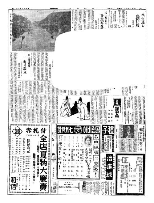 - 遼河汎濫(요하범람) 線路浸水二尺(선로침수이척)