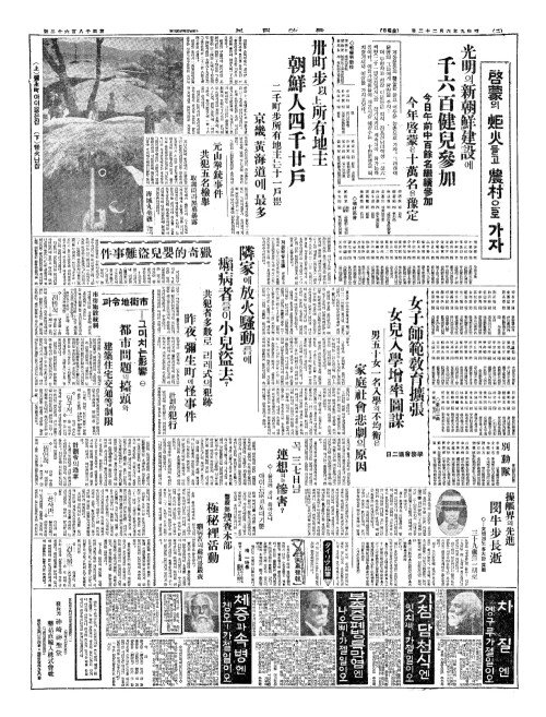 - 卅町步以上所有地主(삽정보이상소유지주) 朝鮮人四千廿戶(조선인사천입호)