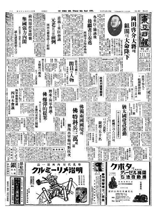 - 岡田啓介大將(강전계개대장)에 組閣(조각)의大命降下(대명항하)