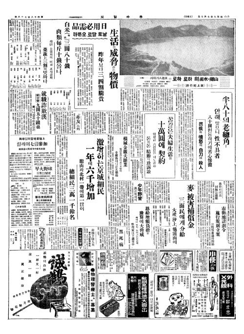 - 激增(격증)하는京城細民(경성세민) 一年(일년)에六千增加(륙천증가)