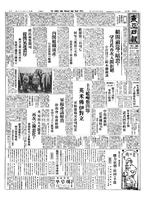 - 組閣第三日(조각제삼일)에도 何等(하등)의進展(진전)을不得(부득)