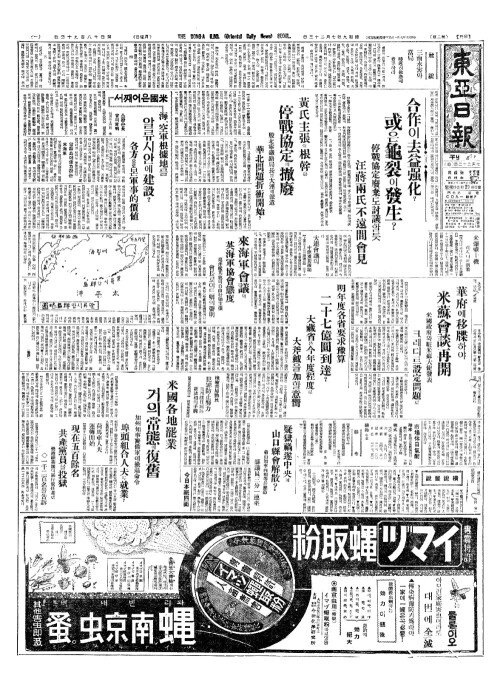 - 華府(화부)에移牒(이첩)하야 米蘇會談再開(미소회담재개)