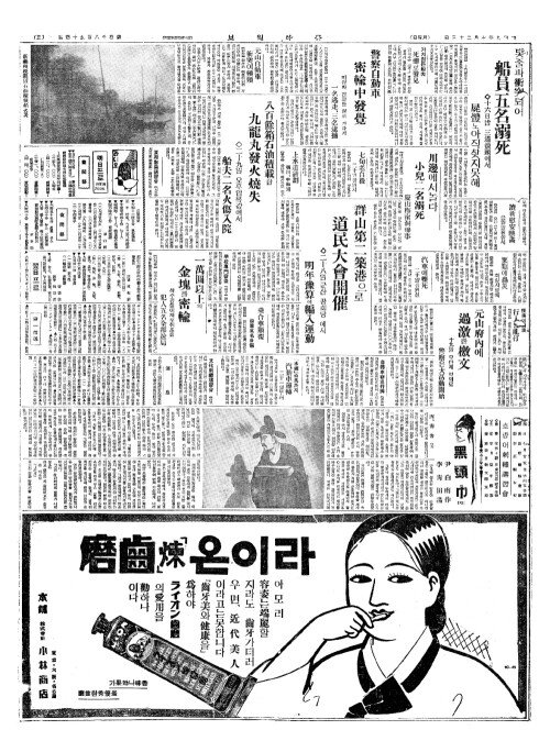 - 八百餘箱石油積載(팔백여상석유적재)한 九龍丸發火燒失(구용환발화소실)