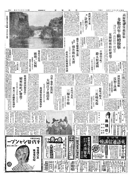 - 高原警察突然緊張(고원경찰돌연긴장) 多數靑年(다수청년)을繼續檢擧(계속검거)