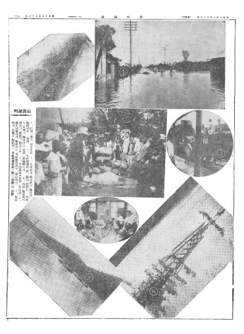 - 倒壞家屋百五十戶(도괴가옥백오십호) 木船(목선)타고救護出動(구호출동)