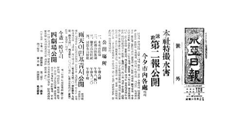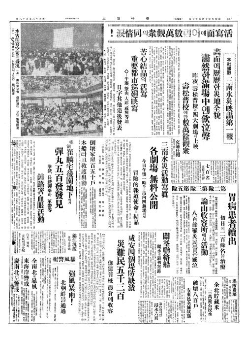 - 三南水災活動寫眞(삼남수재활동사진) 各劇塲(각극장) 無料公開(무요공개)
