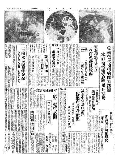- 悽然(처연)한災地(재지)에病魔(병마)가跋扈(발호) 本社(본사) 醫療班各隊(의요반각대) 畢死活動(필사활동)