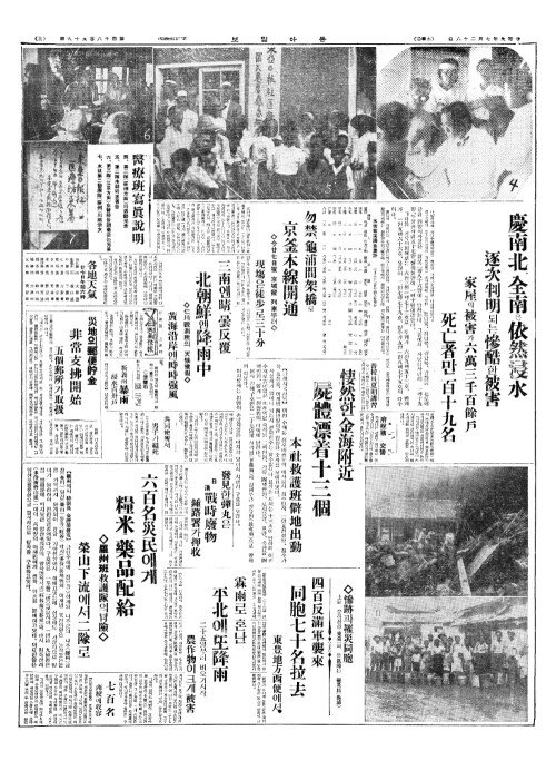 - 新義州暴雨(신의주폭우) 浸水百卅戶(침수백삽호)