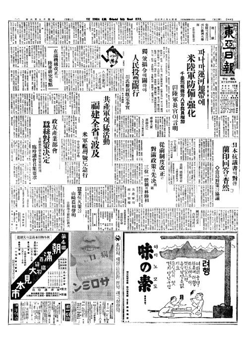 - 日本抗議書(일본항의서)에對(대)한 蘭印回答(란인회답)이杳然(묘연)