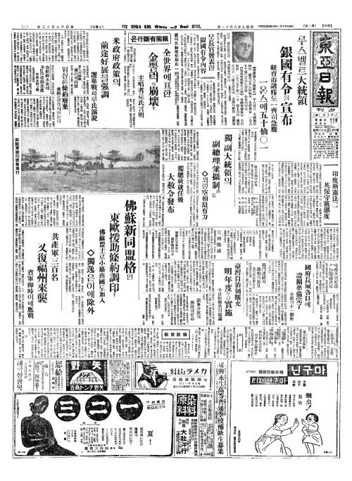 - 上旬對外貿易(상순대외무역) 出超四百四十萬圓(출초사백사십만원)