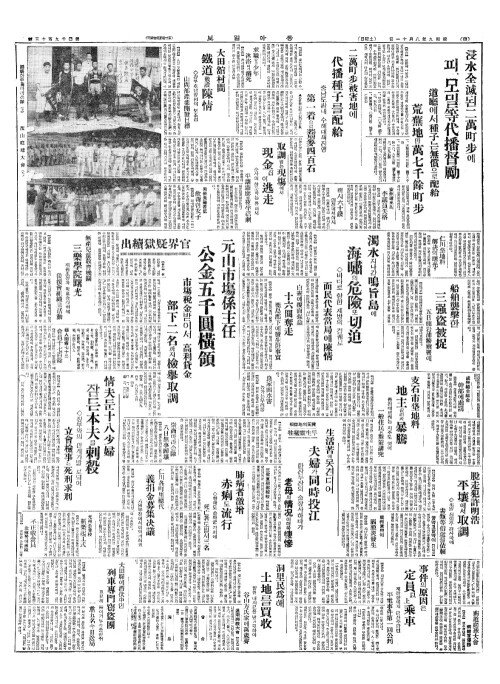 - 浸水全滅(침수전멸)된二萬町步(이만정보)에 피、모밀等代播督勵(등대파독려)