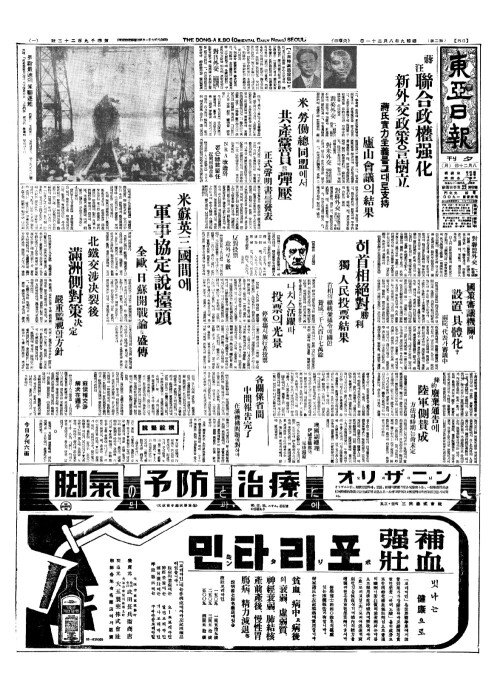 - 米蘇英三國間(미소영삼국간)에 軍事協定說擡頭(군사협정설대두)