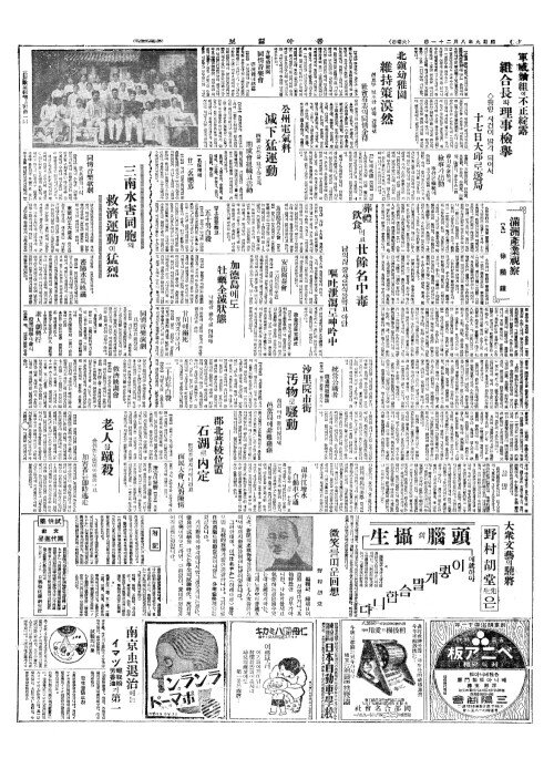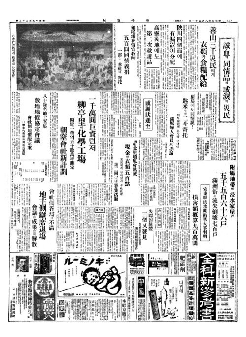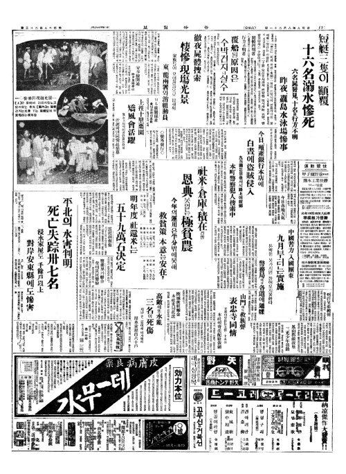 - 平北(평배)의 水害判明(수해판명) 死亡失踪卅七名(사망실종삽칠명)