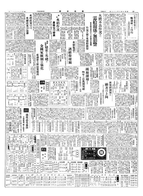 - 東北地方(동배지방) 凶作念慮(흉작염려) 過濕(과습)과早冷(조냉)으로