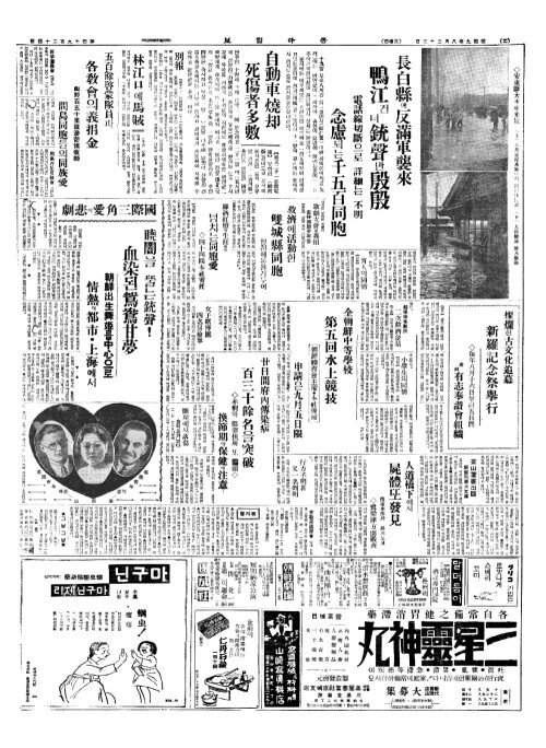 - 長白縣(장백현)에反滿軍襲來(반만군습내) 鴨江(압강)건너銃聲(총성)만殷殷(은은)