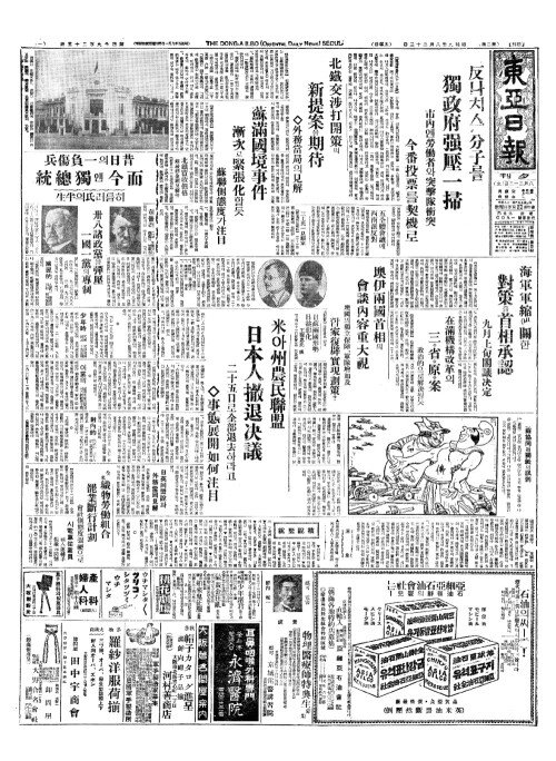 - "反(반)나치스"分子(분자)를 獨政府强壓一掃(독정부강압일소)