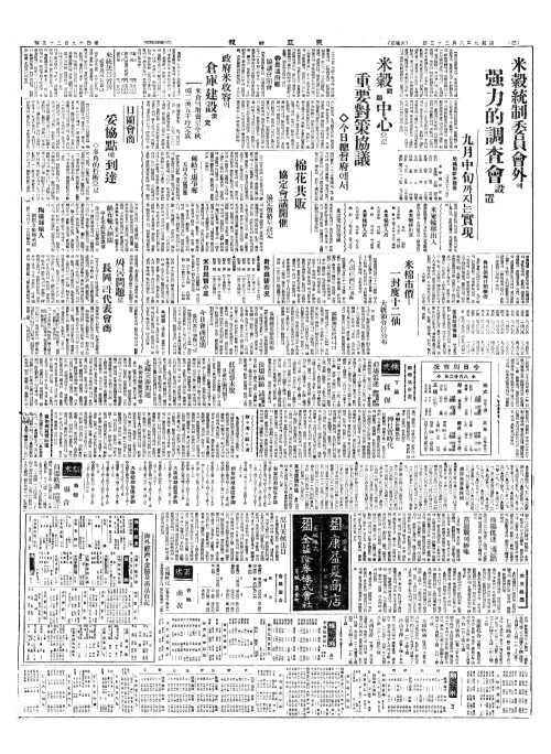 - 米糓統制委員會外(미곡통제위원회외)에 强力的調査會設置(강력적조사회설치)