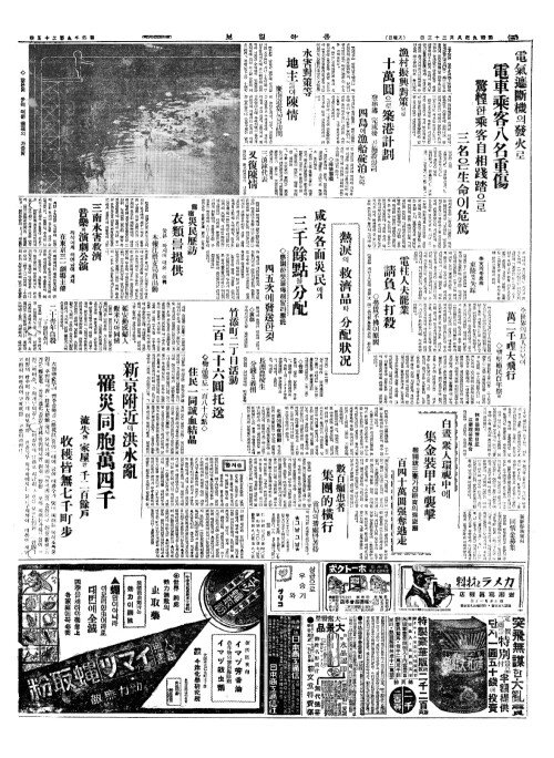 - 新京附近(신경부근)에洪水亂(홍수란) 罹災同胞萬四千(이재동포만사천)